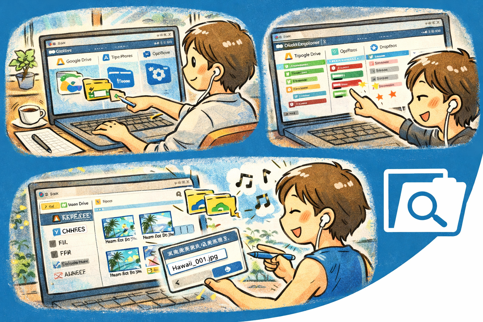 QuickExplorer is a full-featured file manager that goes far beyond browsing. Connect to cloud storage, compare and merge files, split or join large files, manage archives, analyze disk usage, search across your entire system, rename files in bulk, and back up what matters — all from a single, clean interface.
